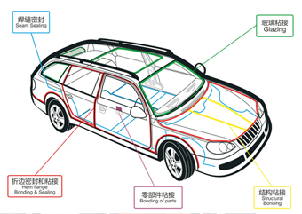 汽車工業(yè)已經(jīng)成為了僅次于建筑和輕工業(yè)以外最大的膠粘劑應用領域,幾乎涵蓋了所有類型膠粘劑而且應用范圍越來越廣........