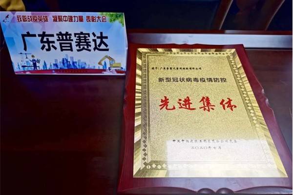 2020年8月10日,中國建筑五局東莞分公司舉行“致敬戰(zhàn)役英雄·凝聚中建力量”表彰大會,對新型冠狀病毒疫情防控工作中,涌現(xiàn)的先進集體和先進個人進行表彰,廣東普賽達密封粘膠有限公司應邀出席,并榮獲新型冠狀病毒疫情防控“先進集體”榮譽稱號。