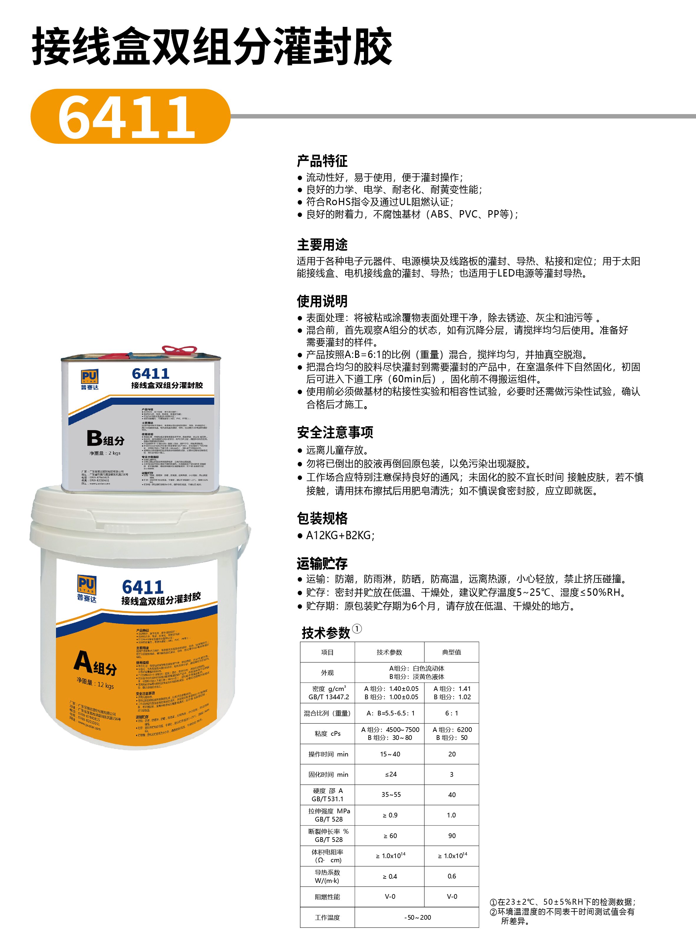 6411 是一種室溫固化的雙組分縮合型有機硅灌封膠,具備固化速度快、易流動灌封、耐黃變、防水防潮、絕緣性能優(yōu)異、粘接基材廣泛等特點,適合用于光伏接線盒、集成電路板、變壓器、防水電源等大面積粘合的密封件澆注和灌封。