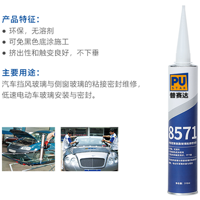 單組分濕氣固化聚氨酯密封膠,具有優(yōu)良的密封性能和內(nèi)聚力,對被粘基材無腐蝕,無污染,與金屬、玻璃等多種基材粘接性好。