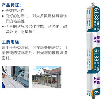 6138為單組分濕氣固化密封膠,采用中性硅酮膠作為原料, 對環(huán)境無污染,與金屬、陶瓷、玻璃、石材等多種基材具有良好的密封粘接性能。