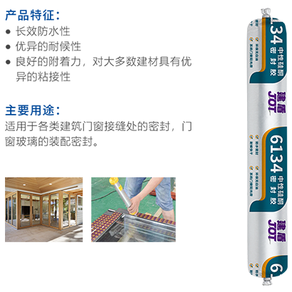 6134為單組分濕氣固化密封膠,采用中性硅酮膠作為原料, 對(duì)環(huán)境無(wú)污染,與金屬、陶瓷、玻璃、石材等多種基材具有良好的密封粘接性能。