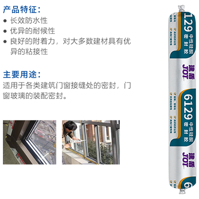 6129為單組分濕氣固化密封膠,采用中性硅酮膠作為原料, 對(duì)環(huán)境無(wú)污染,與金屬、陶瓷、玻璃、石材等多種基材具有良好的密封粘接性能。