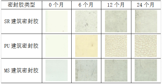 表2 不同建筑密封膠自然曝曬老化后外觀