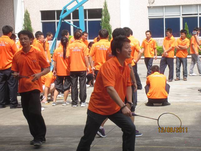 第一部分,拓展活動。8月12日上午8:30全體普賽達(dá)人整齊、有序的聚集在行政大樓前,接受公司創(chuàng)始人兼總經(jīng)理任總廠慶的致詞。接下來普賽達(dá)公司在歡快的鑼鼓聲、震耳欲聾的禮炮聲中拉開了8周歲生日慶典的序幕。上午廠區(qū)拓展活動有拔河比賽、羽毛球比賽、乒乓球比賽、摸著石頭過河等拓展活動。每個項目都有嘉賓參與其中,且所有嘉賓都換上了普賽達(dá)密封粘膠橙色廣告衫。在整個拓展活動的過程中,映入我們眼簾的盡是一片片、一處處、一點點橙燦燦的色彩。此時此刻我們已分不清楚嘉賓和員工,只知道我們都是普賽達(dá)人,我們盡情的歡笑、我們快樂的參與,我們爭先恐后向家人展示自己的熱情與活力,讓我們的家人感受到我們永不服輸、敢于拼搏的精神。